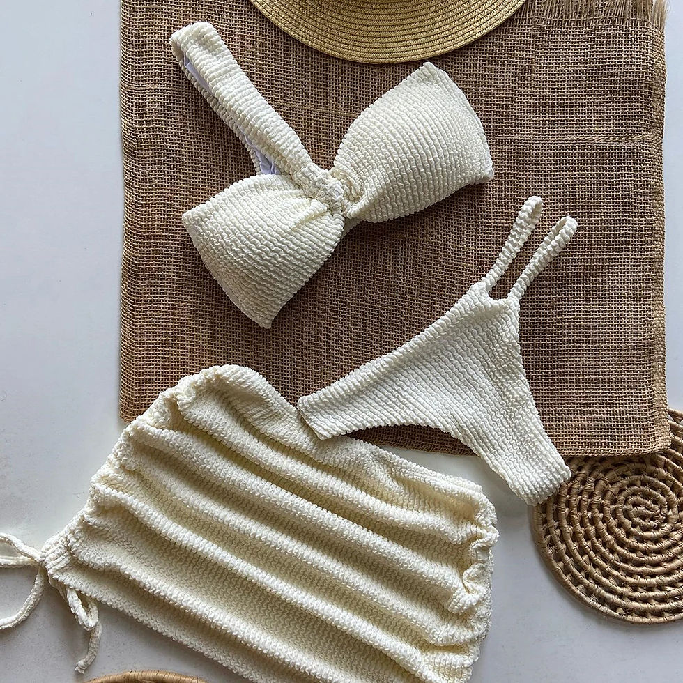 3 Piece Bikini Women Swimsuits 2024 Female Swimwear Beachwear Swimming Suit Bat