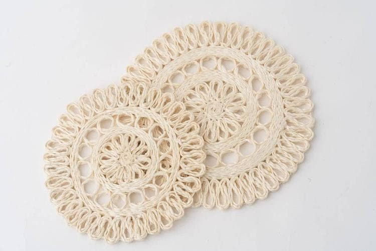 Pinwheel woven placemat, Natural fiber placemat,Raffia placemat, crochet place
